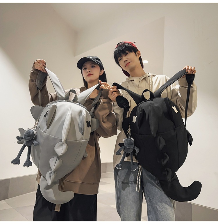 공룡 상어 크리 에이 티브 괴물 배낭 만화 학교 가방 남성과 여성의 새로운 재미 있은 성격 학생 인터넷 연예인 배낭