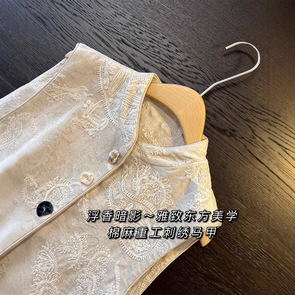 雅致东方美学~新中式棉麻重工刺绣马甲