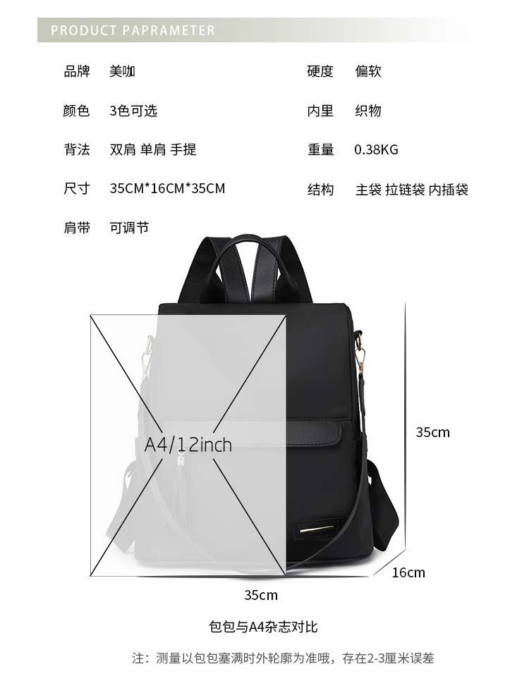 패셔너블한 여행용 백팩 한국어 버전 단색 휴대용 대용량 다목적 백팩 통근 및 외출용 여성용 다용도 백팩스토어 가기