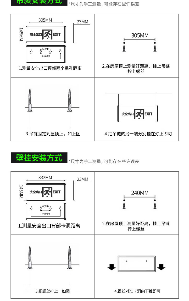 재미있는 안전 출구 표시등 유형 A 화재 비상 대피 표시 국가 표준 CCC 탈출 조명 양면 단방향스토어 가기