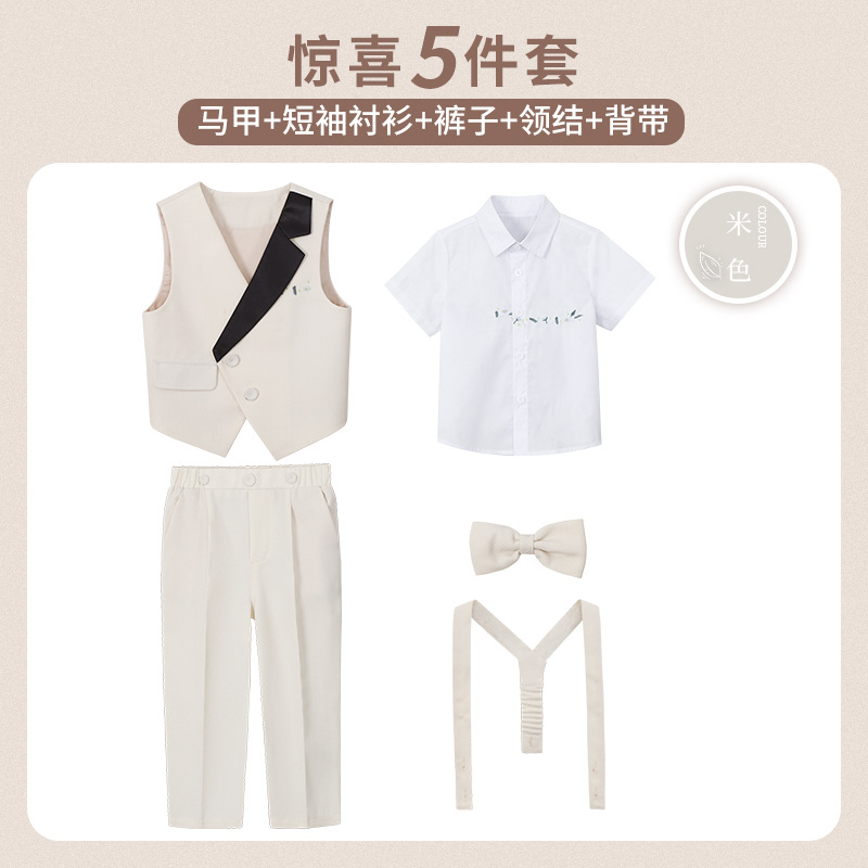 • 베이지 5종 세트 (반팔 셔츠+조끼+바지+나비넥타이+멜빵)