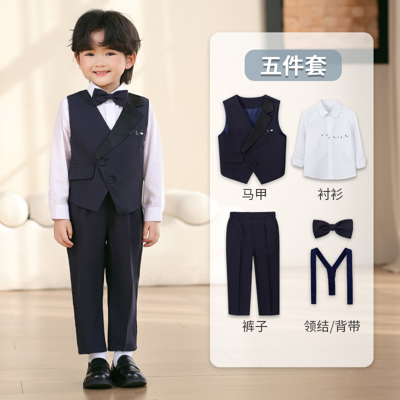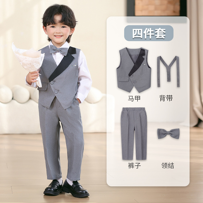 어린이 세트 원피스 영국 꽃 어린이 공연 원피스 소년 신사 조끼 세트 아기 1 년 된 사진 의류 제조 업체