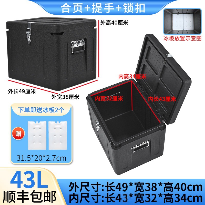 • 43리터 검정색(경첩 + 손잡이 포함) + 얼음판 2개