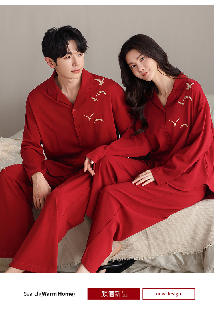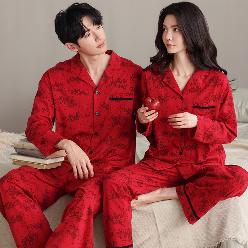 커플 잠옷 여성 가을, 겨울 순수 코튼 긴팔 바지 빅 레드 동물의 해 신혼 웨딩 홈웨어 남성스토어 가기