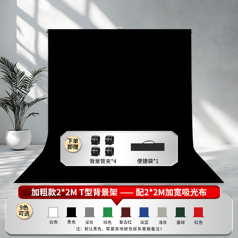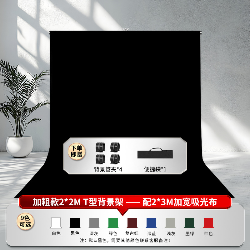 • [배경 스탠드 세트 C] 2*2M 확장 검정색 배경 천 + 2*2M 배경 T 스탠드-1x1m
