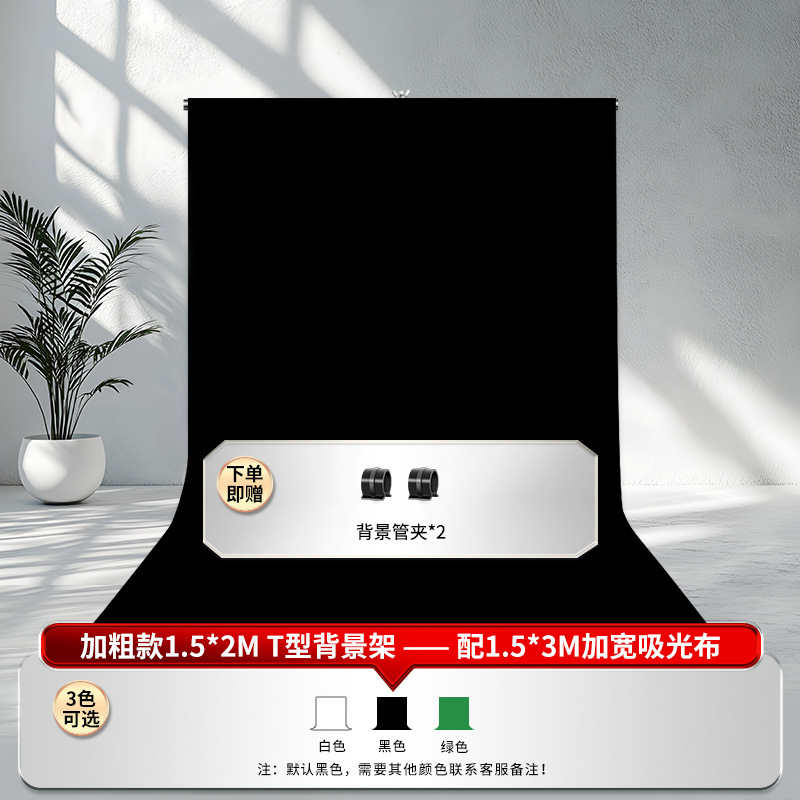• [배경 스탠드 세트 B] 1.5*3M 넓어진 검정색 배경 천 + 1.5*2M 배경 T 스탠드-1x1m