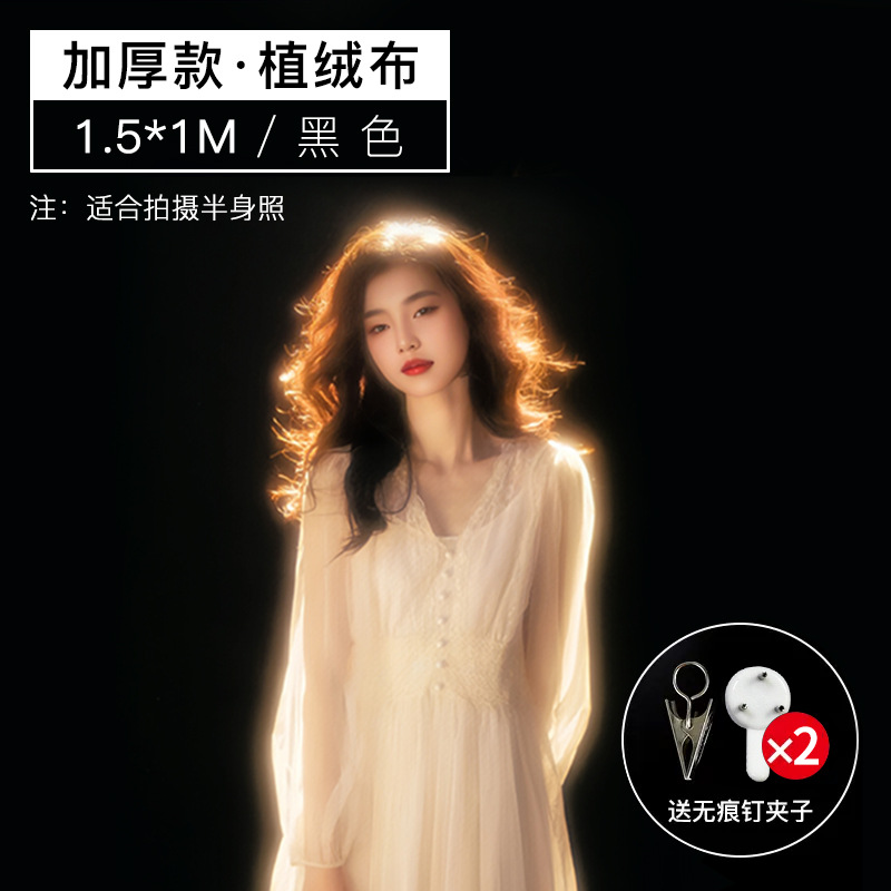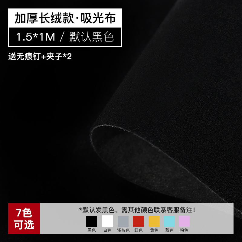 • [특별 제공] 1.5x1m 검정색 빛 흡수 천(무료 흔적 없는 네일 클립 2개) - 1x1m