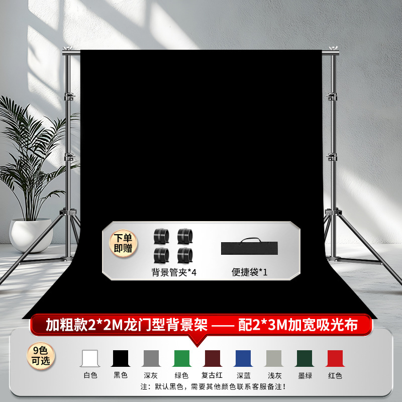 • [배경 스탠드 세트 E] 2*3M 넓어진 검정색 배경 천 + 2*2M 배경 스탠드-1x1m