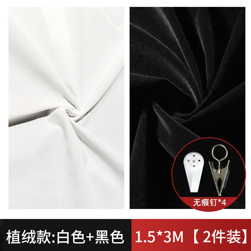 • [기간 한정 1개 구매 시 1개 무료] 두꺼운 플로킹 천 1.5*2M 검정 + 흰색(자취 없는 네일 클립 4개 무료) -1x1m