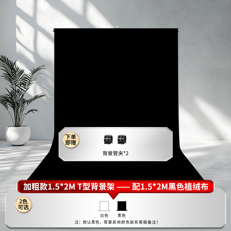 • [배경 스탠드 세트 A] 1.5*2M 넓어진 검정색 배경 천 + 1.5*2M 배경 T 스탠드-1x1m