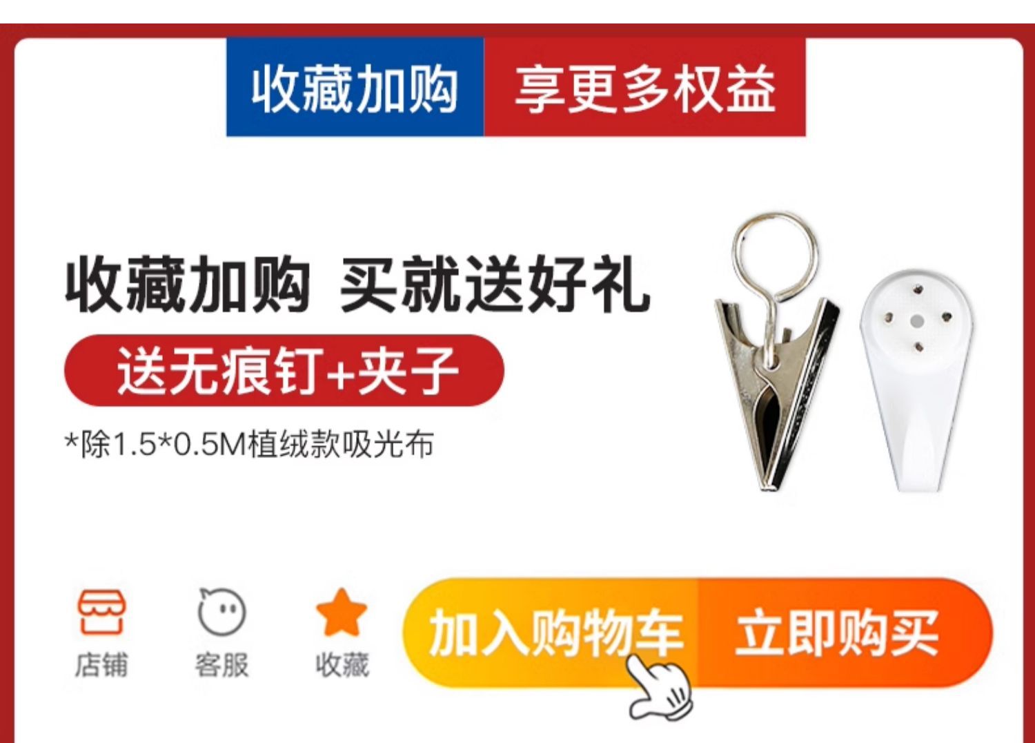 • [1개 구매 시 1개 무료] 2*2m 빛 흡수 천 검정 + 흰색(자취 없는 네일 클립 무료)-1x1m
