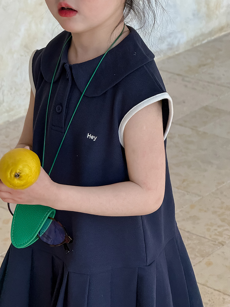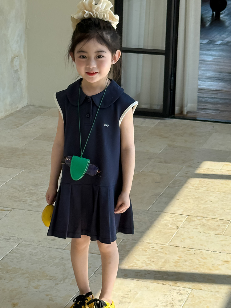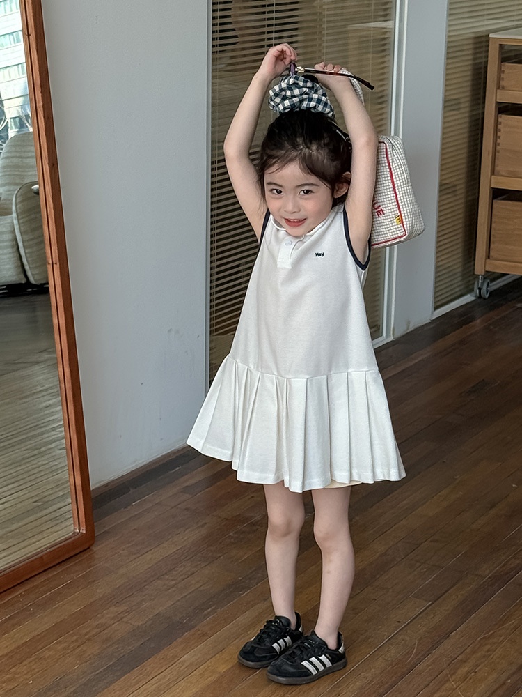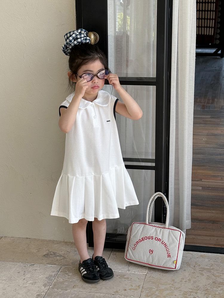 소녀 니트 폴로 스커트 2025 여름 새로운 어린이 미우 편지 인형 칼라 옷깃 Pleated 원피스스토어 가기