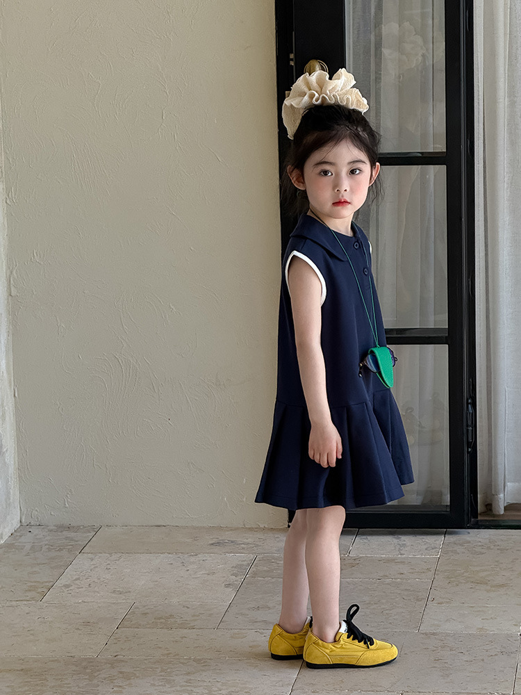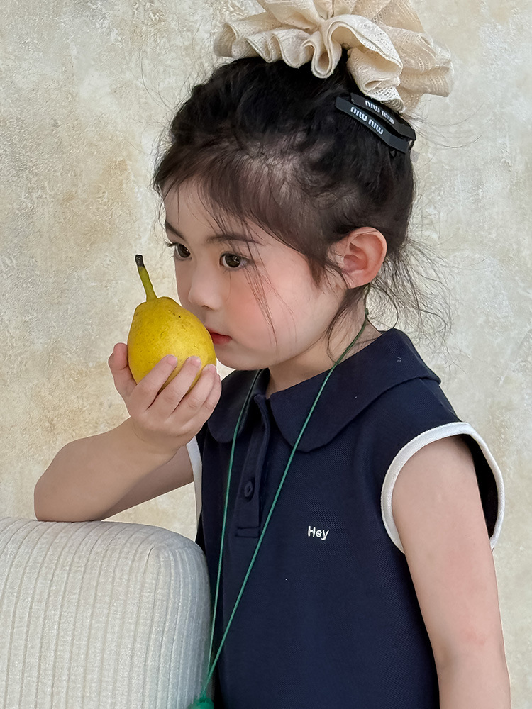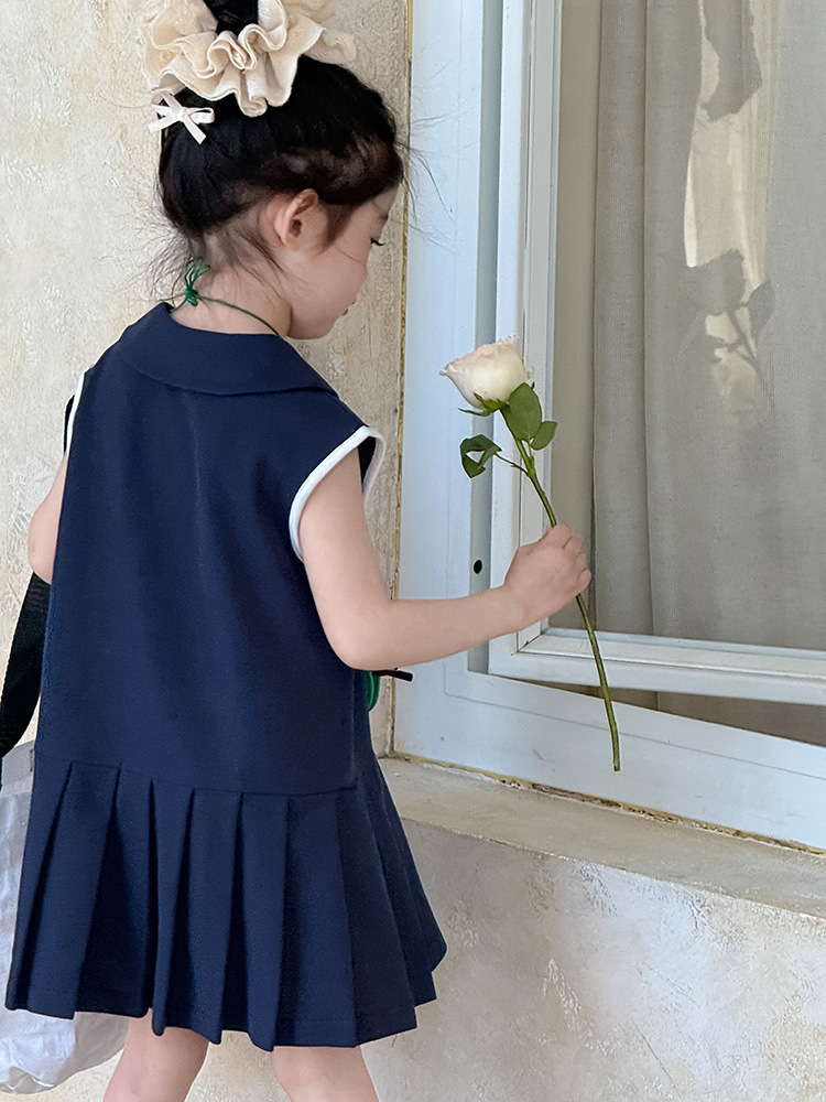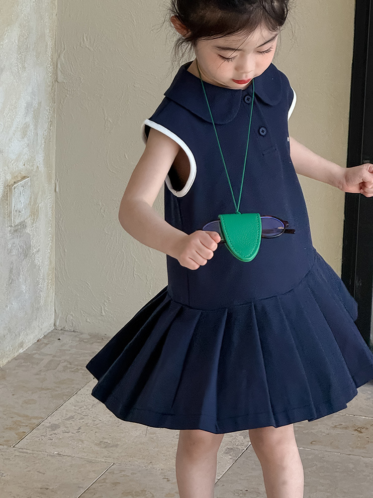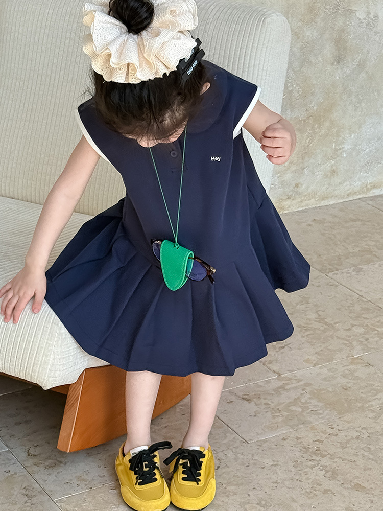 소녀 니트 폴로 스커트 2025 여름 새로운 어린이 미우 편지 인형 칼라 옷깃 Pleated 원피스스토어 가기