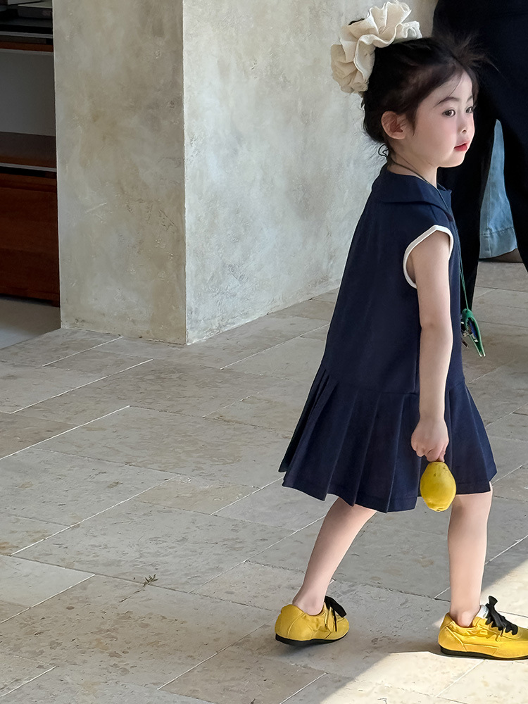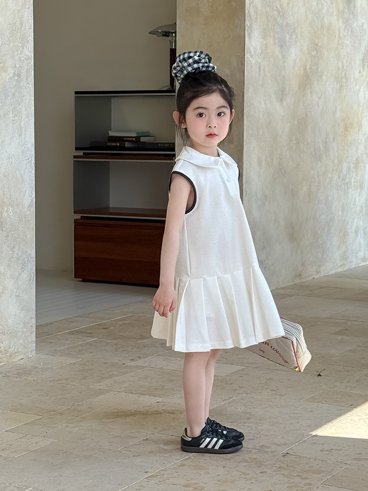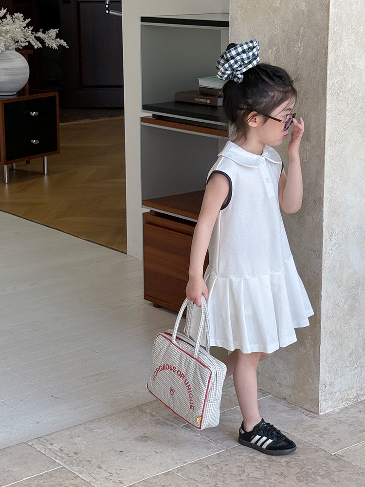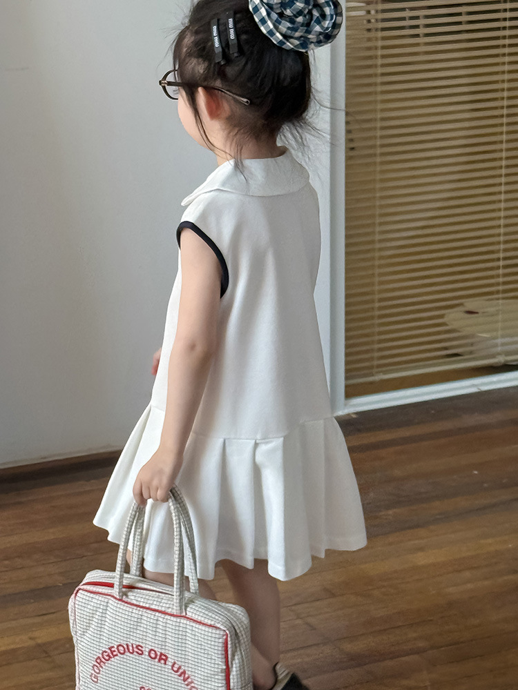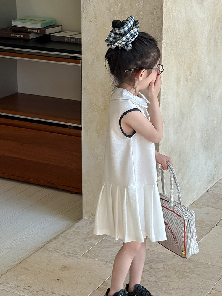 소녀 니트 폴로 스커트 2025 여름 새로운 어린이 미우 편지 인형 칼라 옷깃 Pleated 원피스