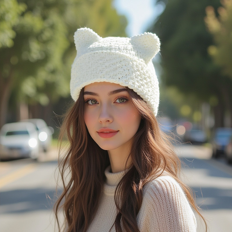 한국식 작은 악마 모직 모자, 귀여운 뾰족한 모자, 패셔너블하고 다재다능한 니트 모자, 단색 귀 보호 모자 도매스토어 가기
