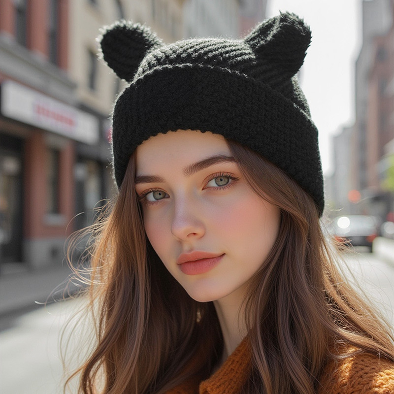 한국식 작은 악마 모직 모자, 귀여운 뾰족한 모자, 패셔너블하고 다재다능한 니트 모자, 단색 귀 보호 모자 도매