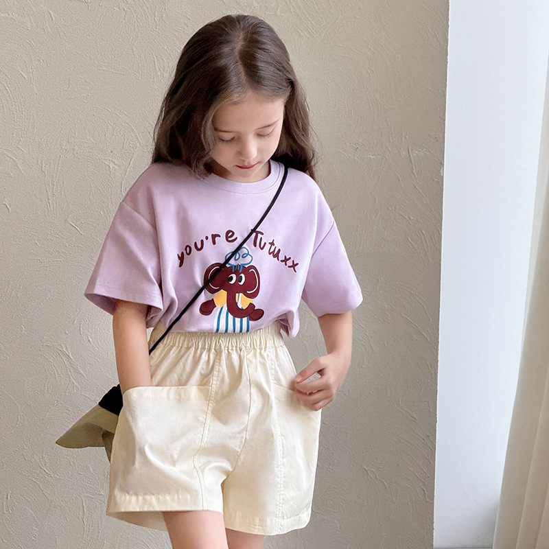 투투 코끼리 여아 티셔츠 2026 여름 신상품 어린이 만화 반팔 아기 다용도 멀티 컬러 라운드넥 상의