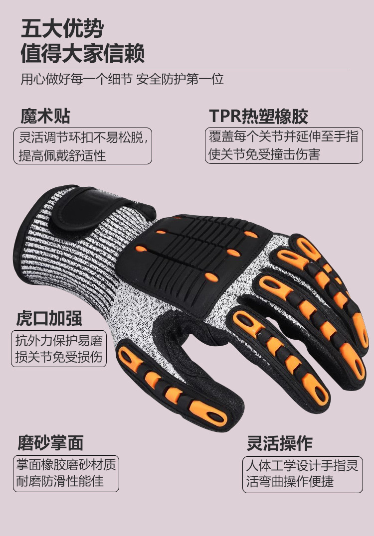 도매 5 레벨 절단 방지, 미끄럼 방지, 찌르기 방지, 내마모성 및 충돌 방지 장갑, 화재 구조 및 구조 TPR 충격 방지 사이클링 장갑
