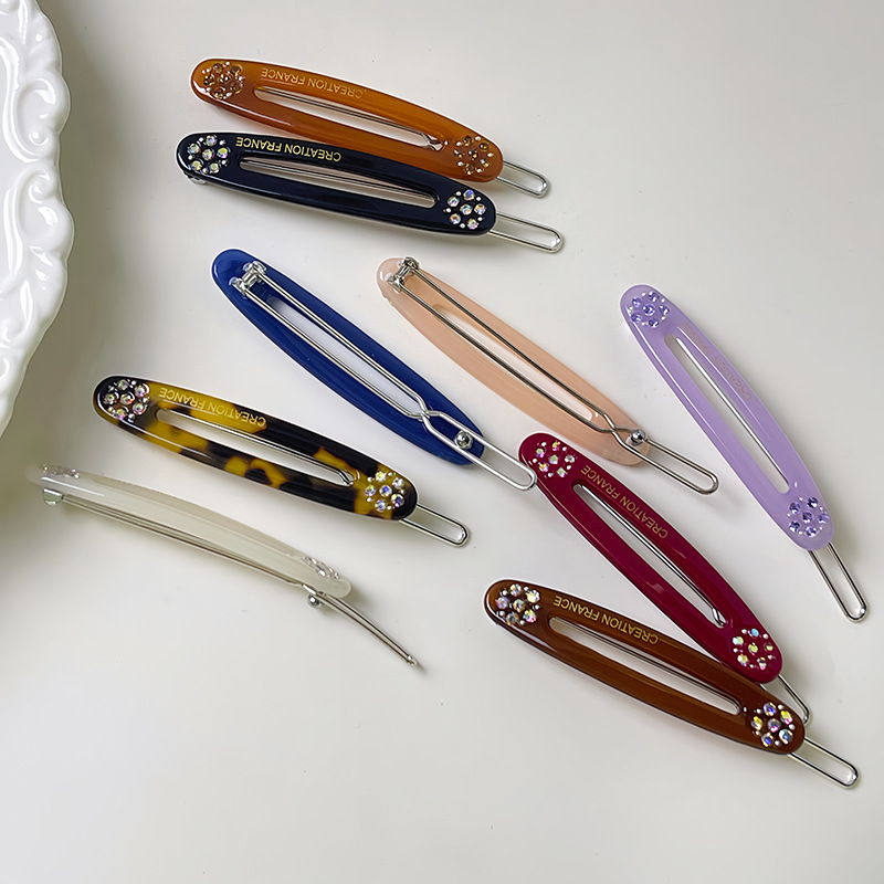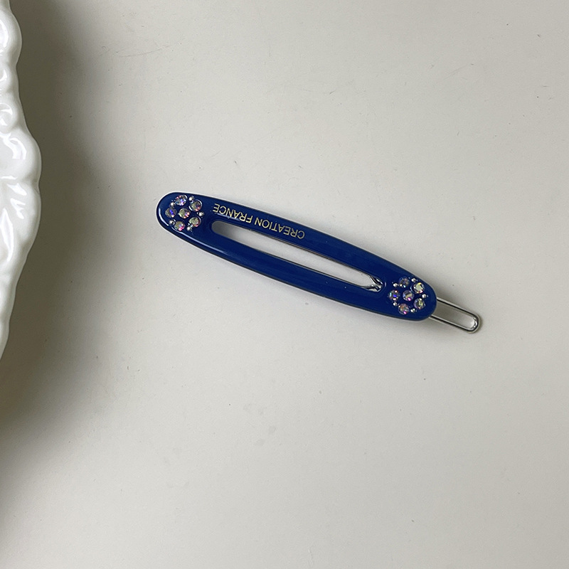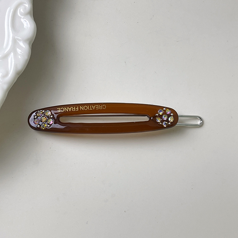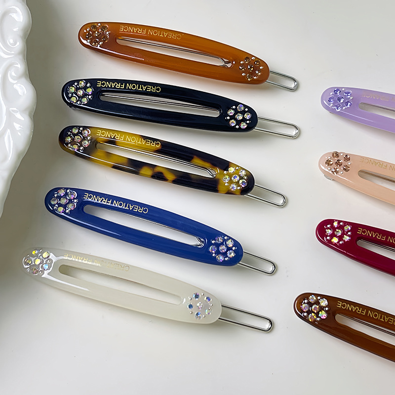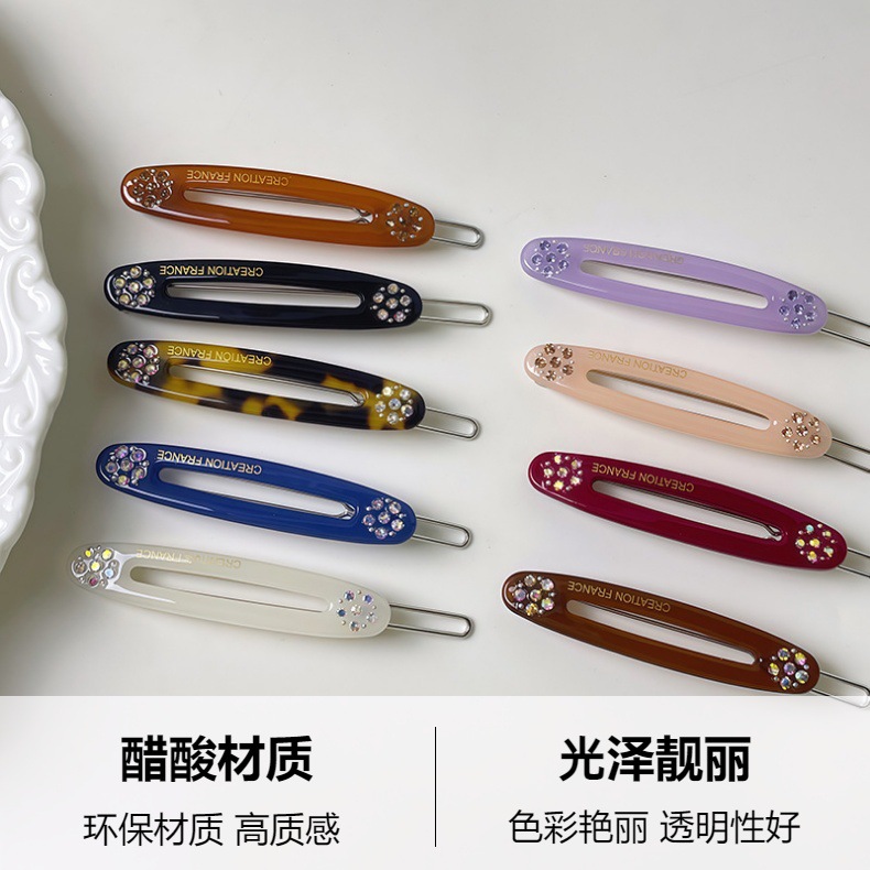 한국 골드 라벨 젤리 컬러 다이아몬드 플라워 헤어핀 라이트 럭셔리 우아한 뱅 클립 한 캐릭터 클립 타원형 사이드 클립 여성용 헤어 액세서리