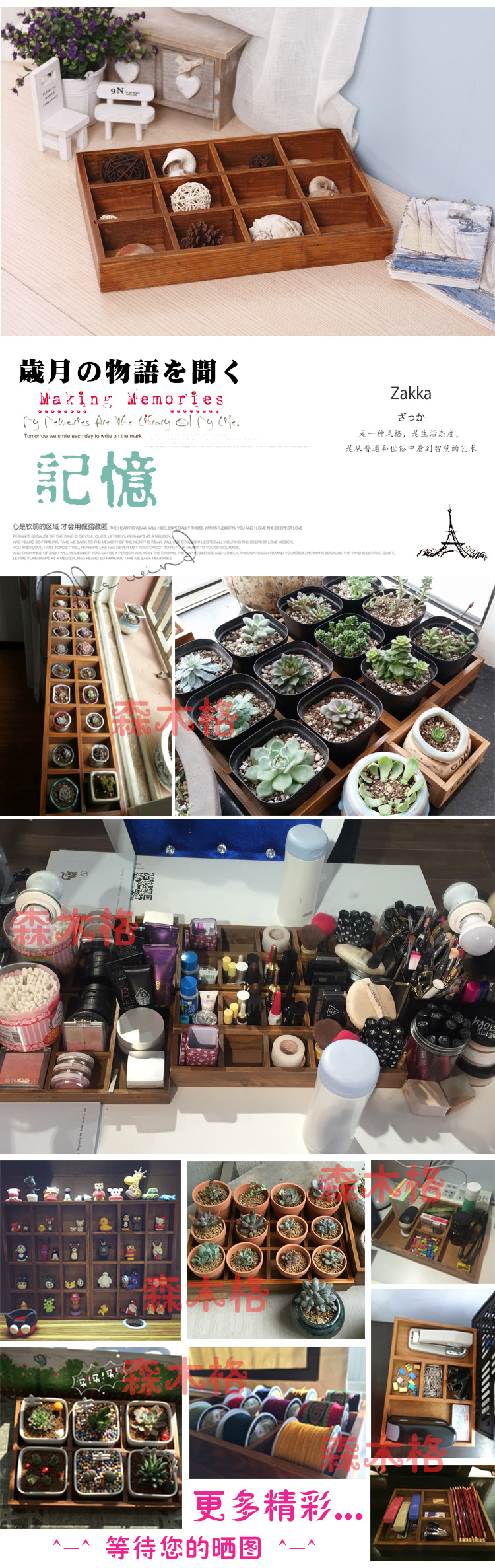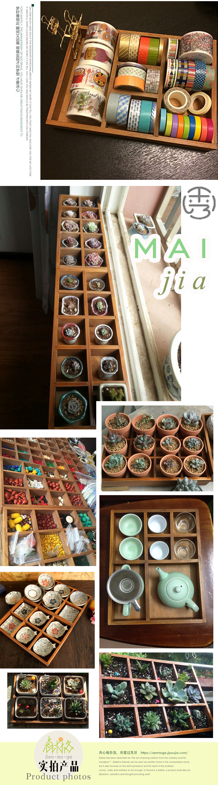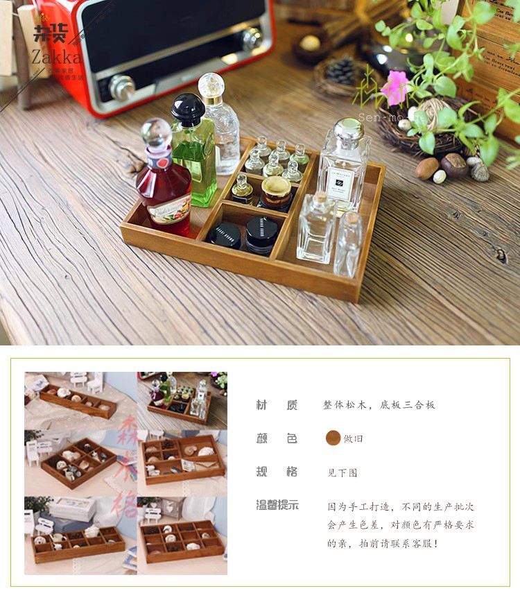 빈티지 나무 9 그리드 스토리지 박스 데스크탑 분할 디스플레이 보석 나무 스토리지 플레이트 멀티 스타일
