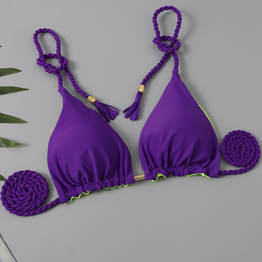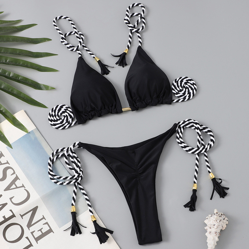 2025 유럽과 미국의 새로운 비키니 수영복 여성 솔리드 컬러 스플릿 드로스트링 보우 섹시한 비키니 스플릿 수영복