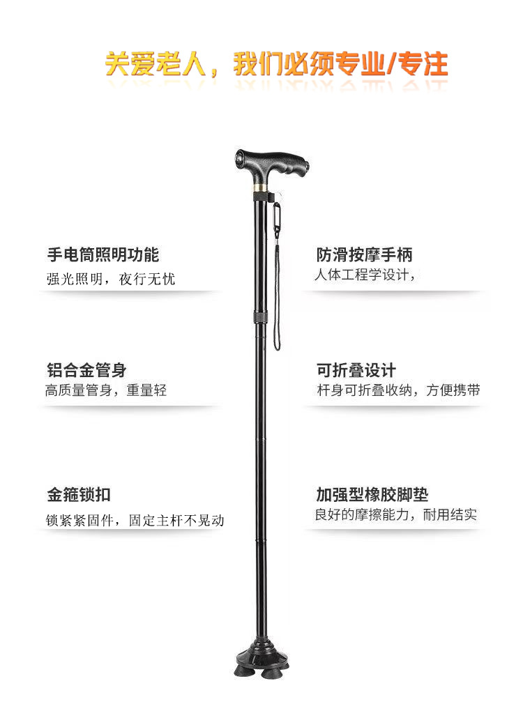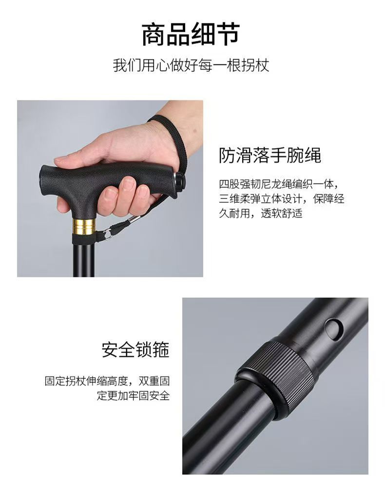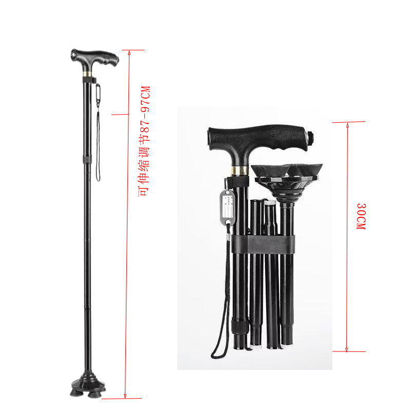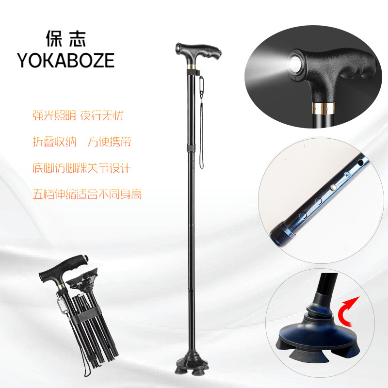 Baozhi 노인용 접이식 지팡이, 미끄럼 방지, 경량, 4발 지팡이, 안정적이고 낙하 방지, 등산 및 하이킹 노인 지팡이
