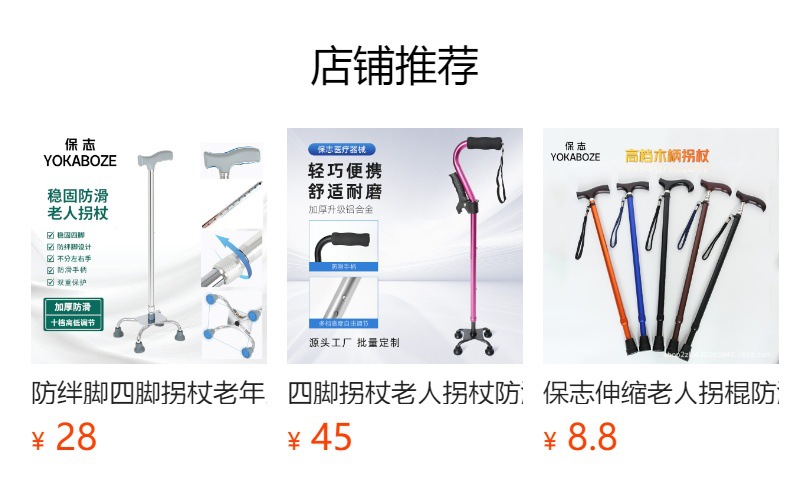 Baozhi 노인용 접이식 지팡이, 미끄럼 방지, 경량, 4발 지팡이, 안정적이고 낙하 방지, 등산 및 하이킹 노인 지팡이스토어 가기