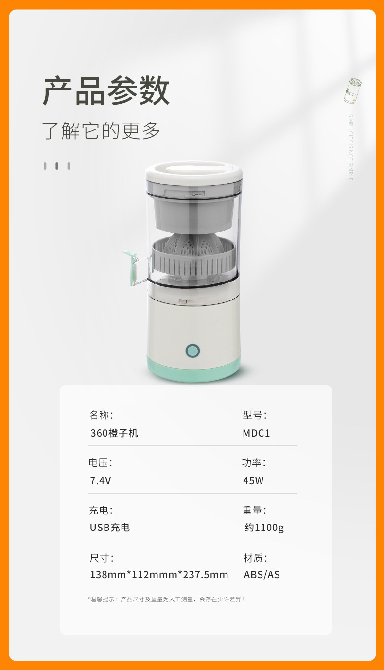 완전 자동 주스 기계 가정용 주스 기계 과일 신선한 오렌지 휴대용 주스 기계 회전 휴대용 믹싱 컵