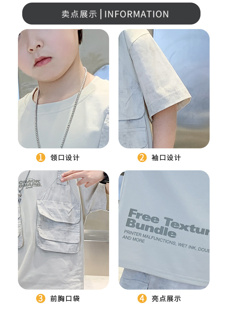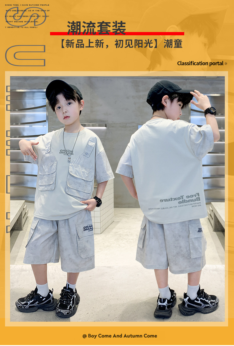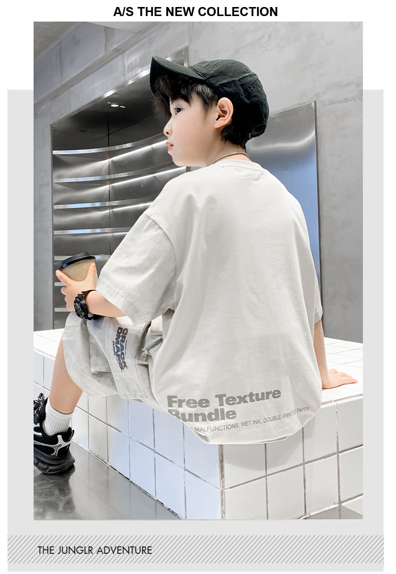 소년 여름 공구 짧은 소매 세트 2025 새로운 큰 어린이 패션 ruffian 잘 생긴 소년 옷 티셔츠 반바지 8스토어 가기