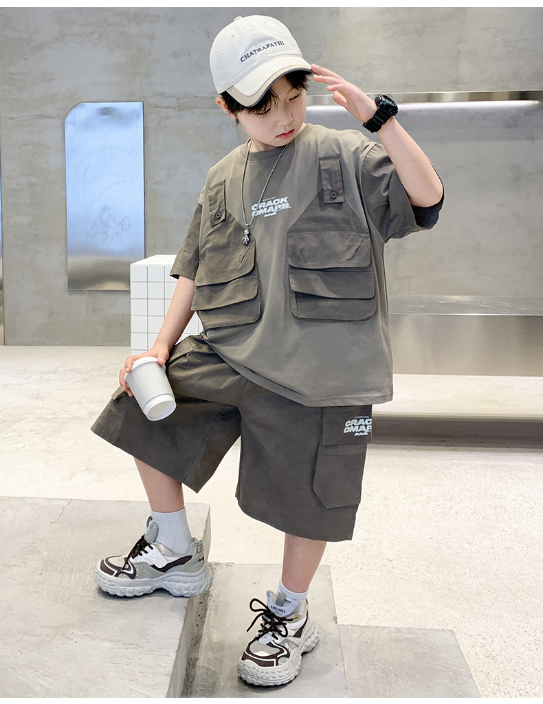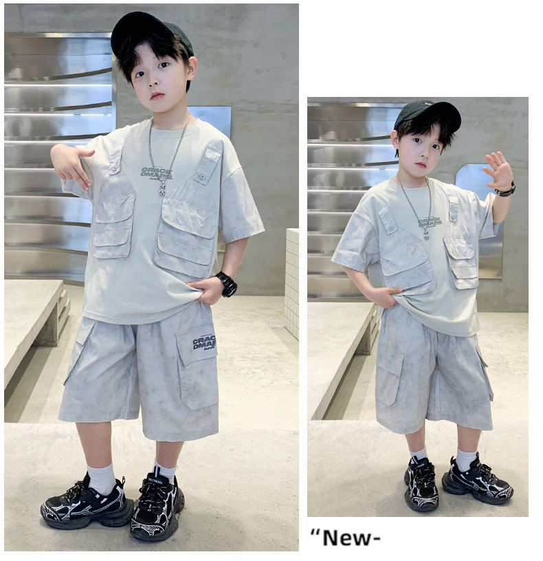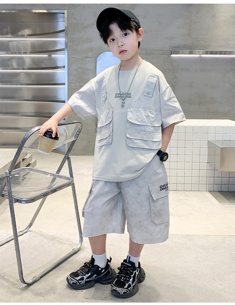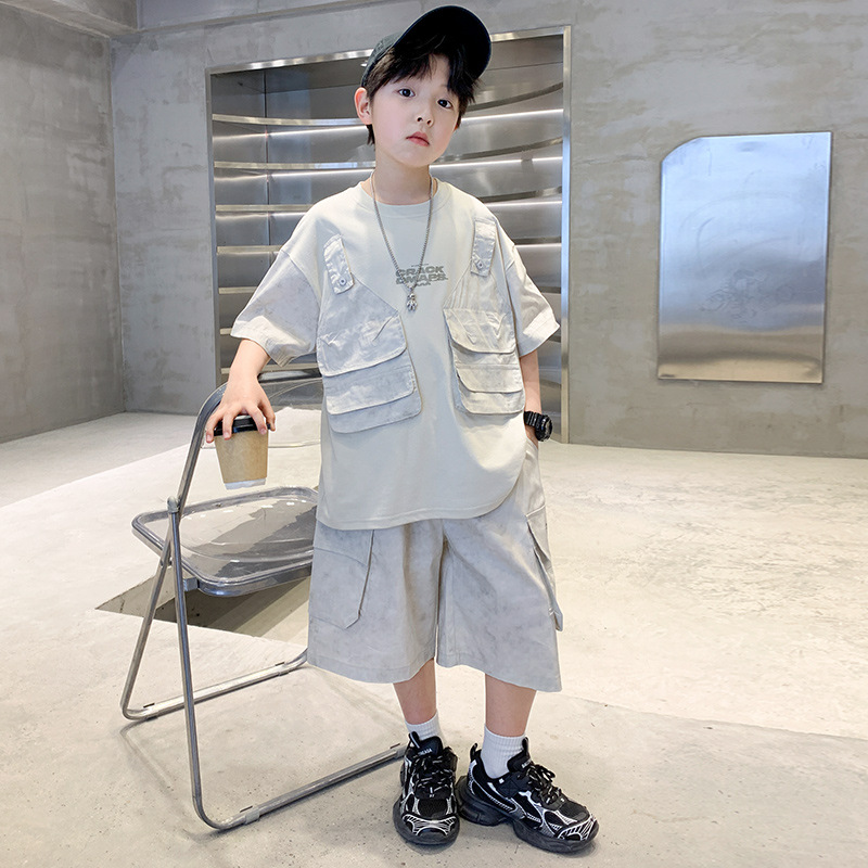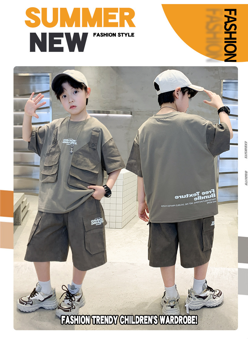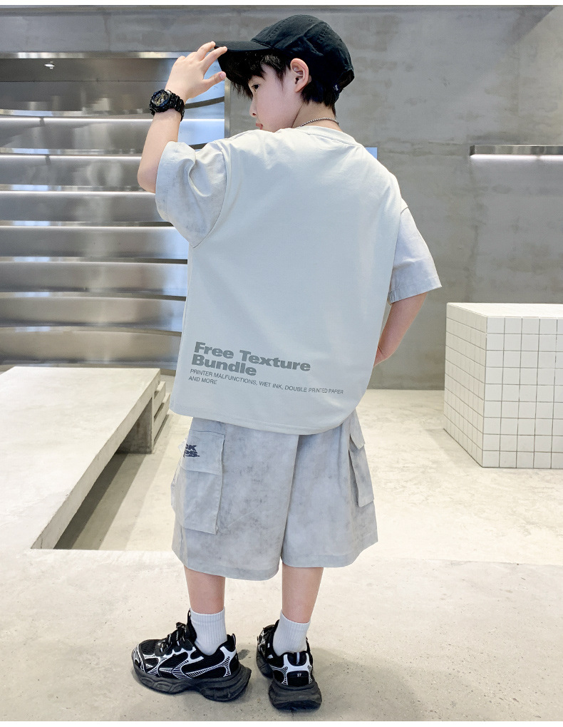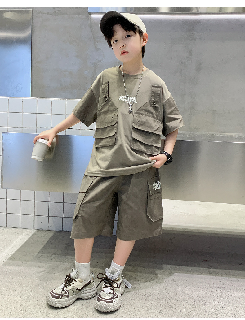 소년 여름 공구 짧은 소매 세트 2025 새로운 큰 어린이 패션 ruffian 잘 생긴 소년 옷 티셔츠 반바지 8