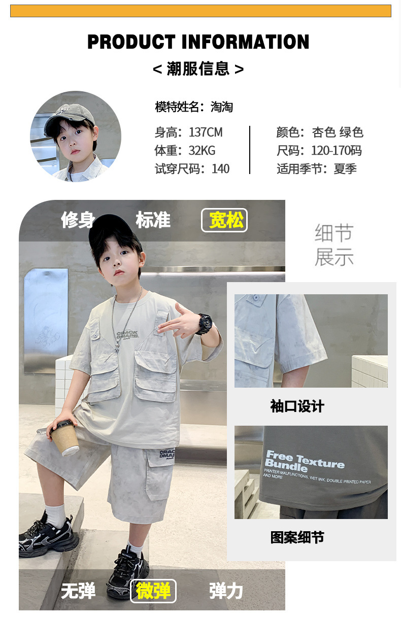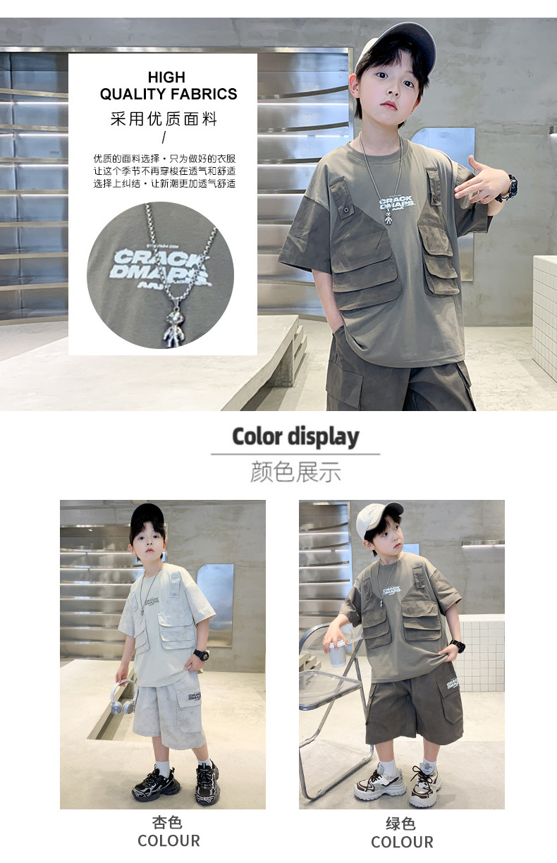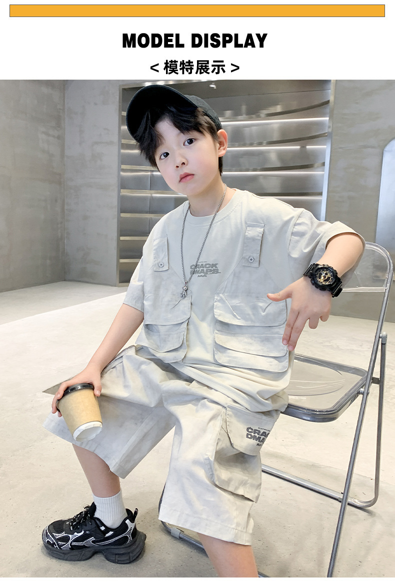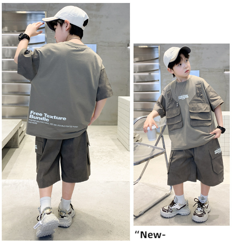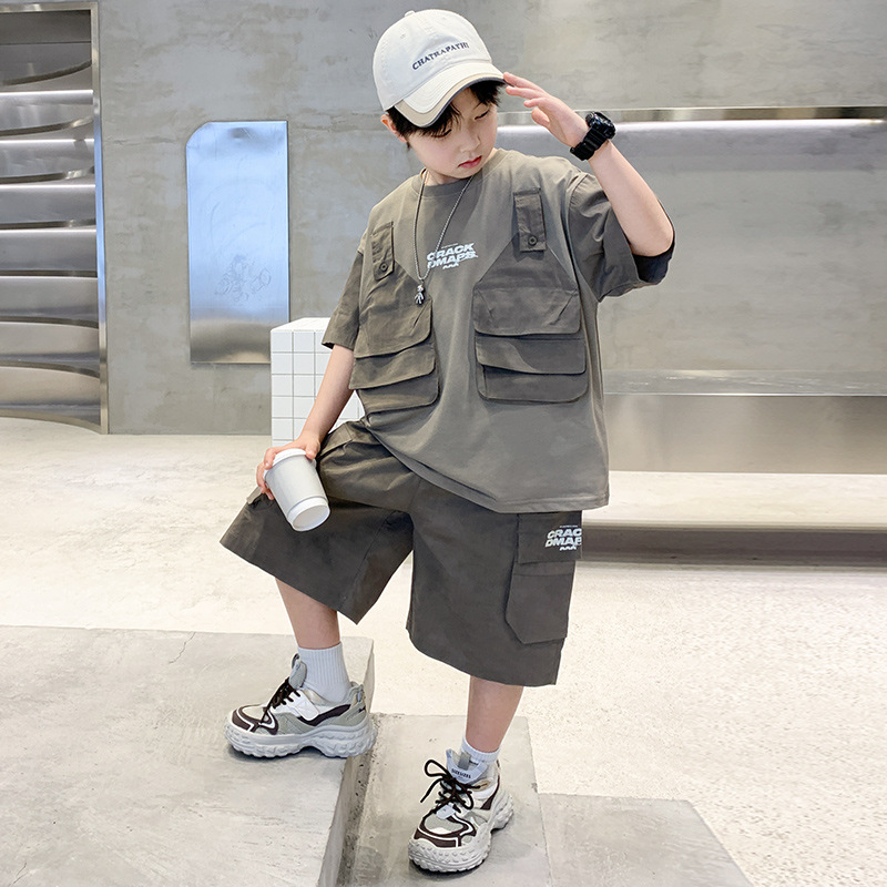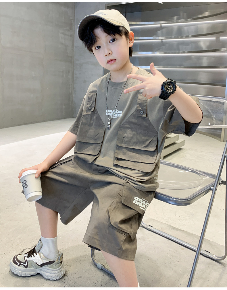 소년 여름 공구 짧은 소매 세트 2025 새로운 큰 어린이 패션 ruffian 잘 생긴 소년 옷 티셔츠 반바지 8