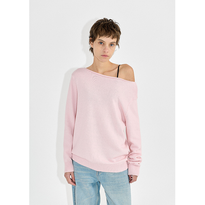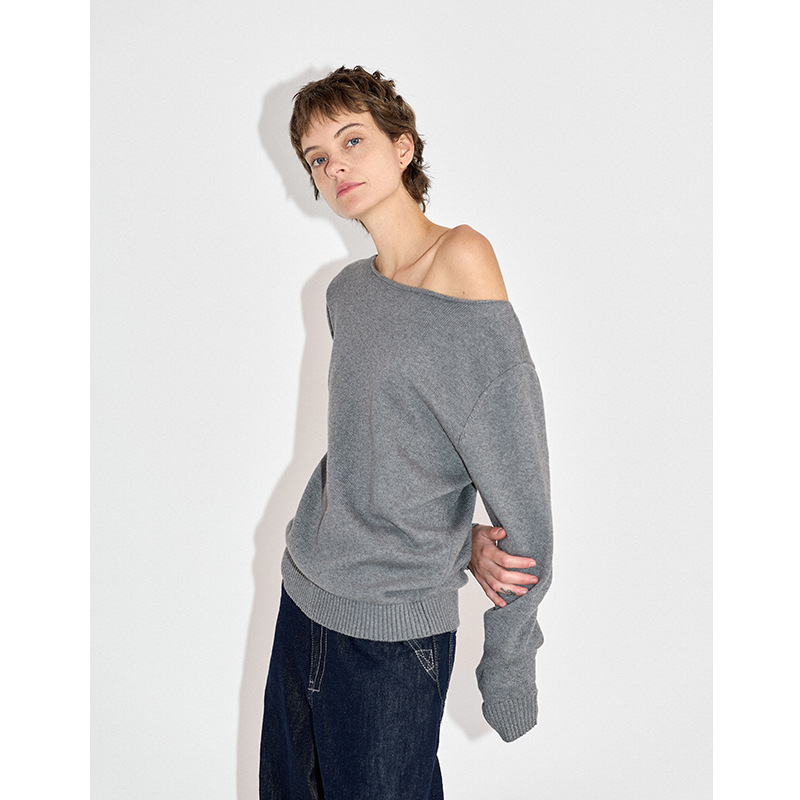 Nantao Hot Girl 캐시미어 컬링 원 숄더 스웨터 여성 2025 가을 디자인 오프 숄더 레이지 스타일 탑스토어 가기