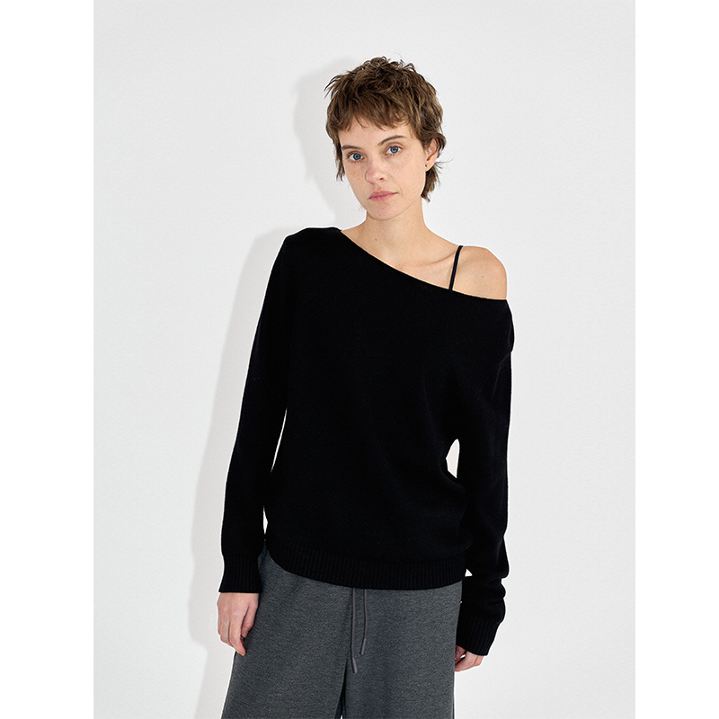 Nantao Hot Girl 캐시미어 컬링 원 숄더 스웨터 여성 2025 가을 디자인 오프 숄더 레이지 스타일 탑