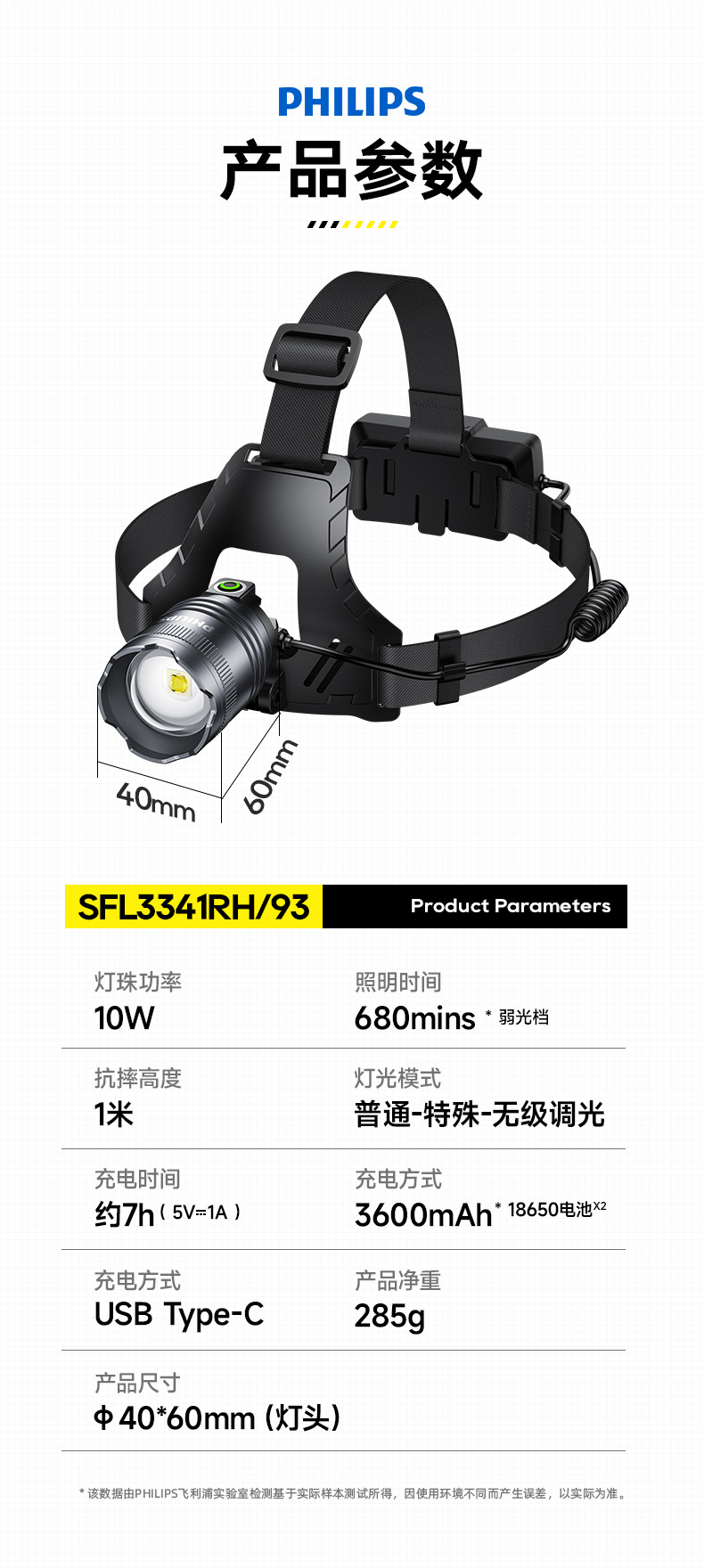 필립스 SFL3341RH 헤드라이트 강한 빛 줌 슈퍼 밝은 긴 내구성 충전 작업 야외 헤드 라이트