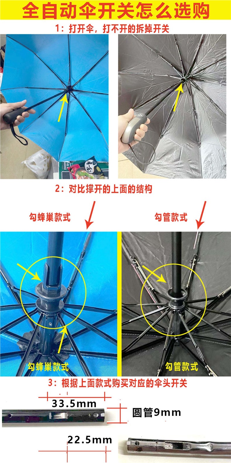8본 10본 전자동 우산 액세서리 접이식 우산 헤드 자동 우산 손잡이 우산 손잡이 버튼 스위치 태양 우산 헤드스토어 가기