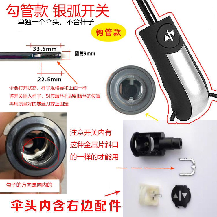 • 후크 튜브 모델 3122_자동 우산 스위치 실버 아크 1개_