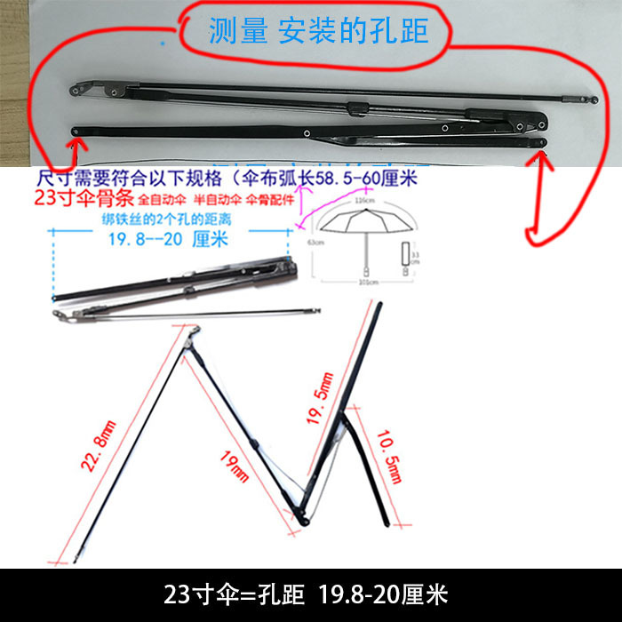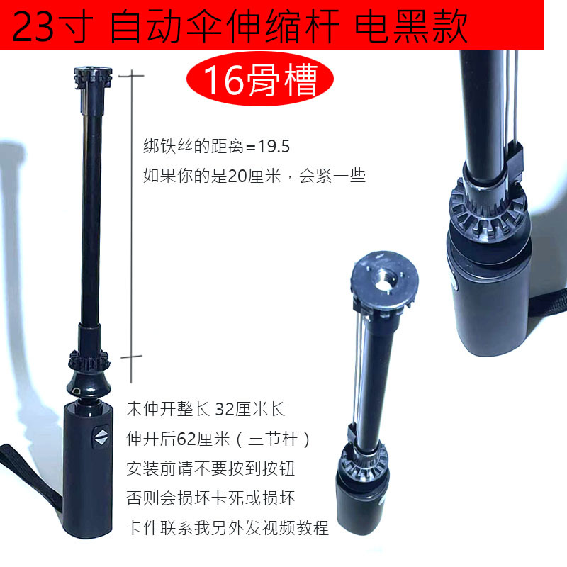 • 23인치 16슬롯 [블랙폴] 텔레스코픽 폴 [] 우산머리_