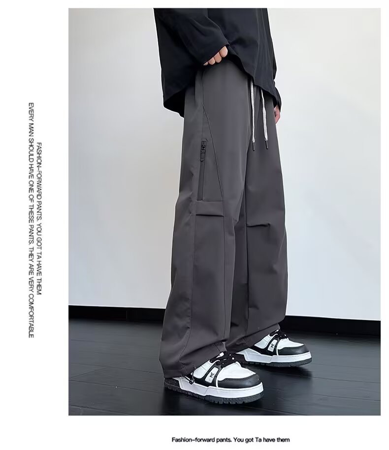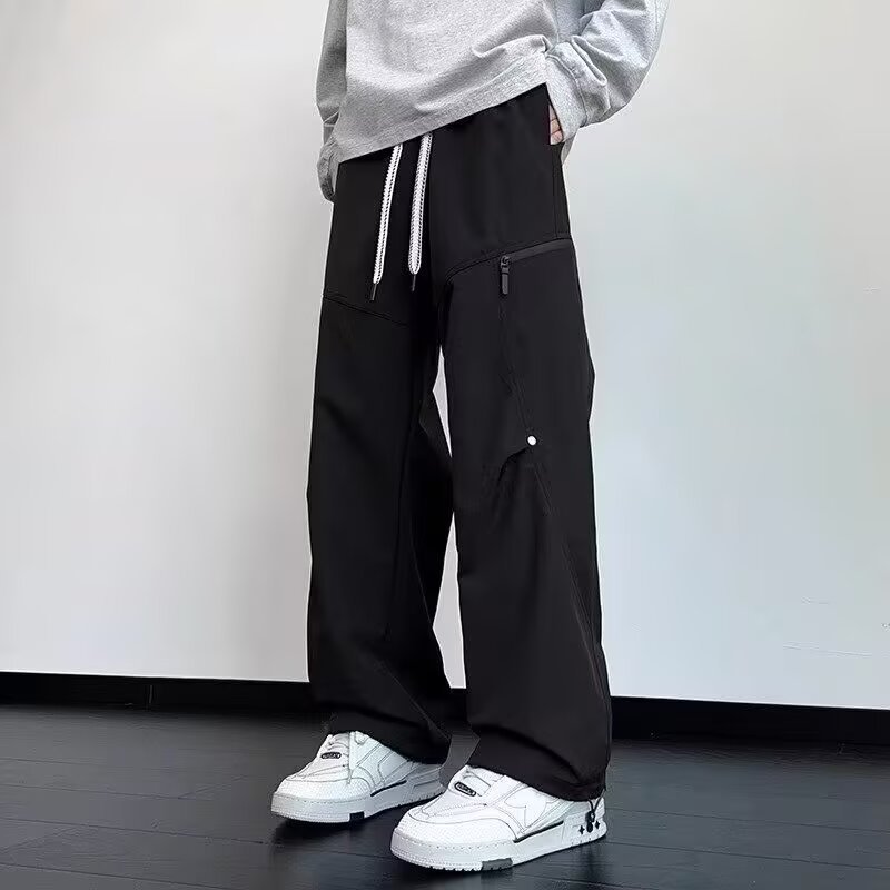 아메리칸 스타일 충전 툴링 바지 남성 봄과 여름 패션 브랜드 스트레이트 캐주얼 바지 남성용 느슨한 끈 다리 낙하산 바지