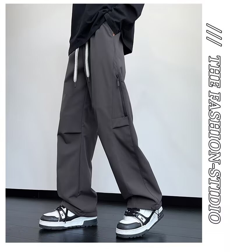 아메리칸 스타일 충전 툴링 바지 남성 봄과 여름 패션 브랜드 스트레이트 캐주얼 바지 남성용 느슨한 끈 다리 낙하산 바지스토어 가기