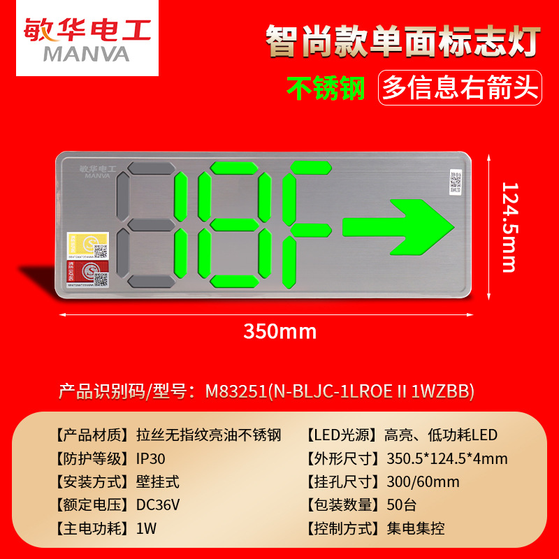 • Zhishang 스테인레스 스틸 사인 라이트 [단면 바닥 오른쪽 화살표] M83251