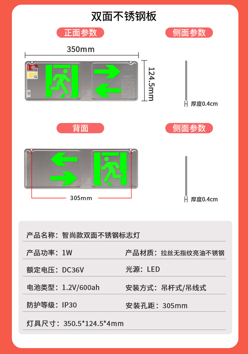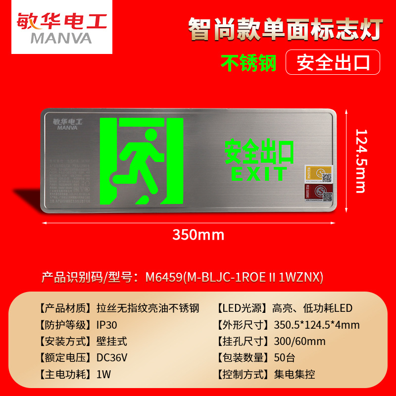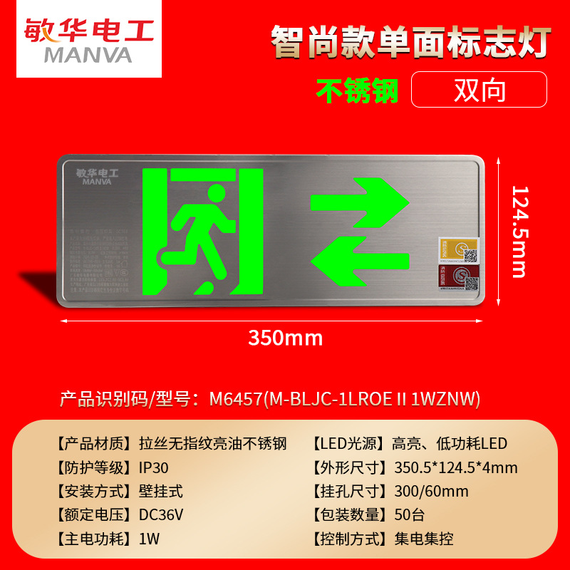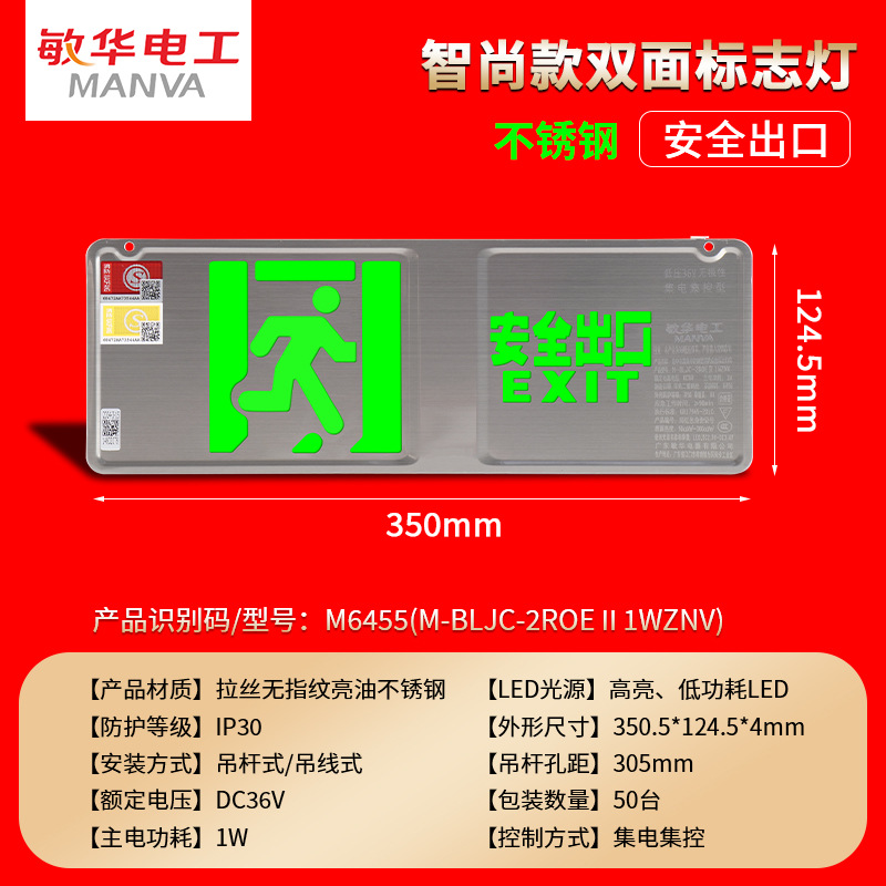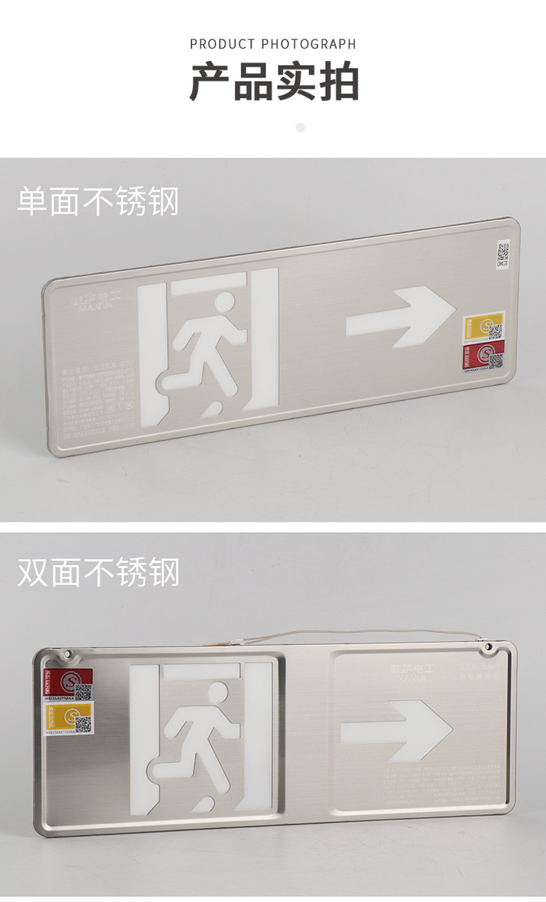 • Zhishang 스타일 스테인레스 스틸 사인 라이트 [양면 안전 출구] M6455