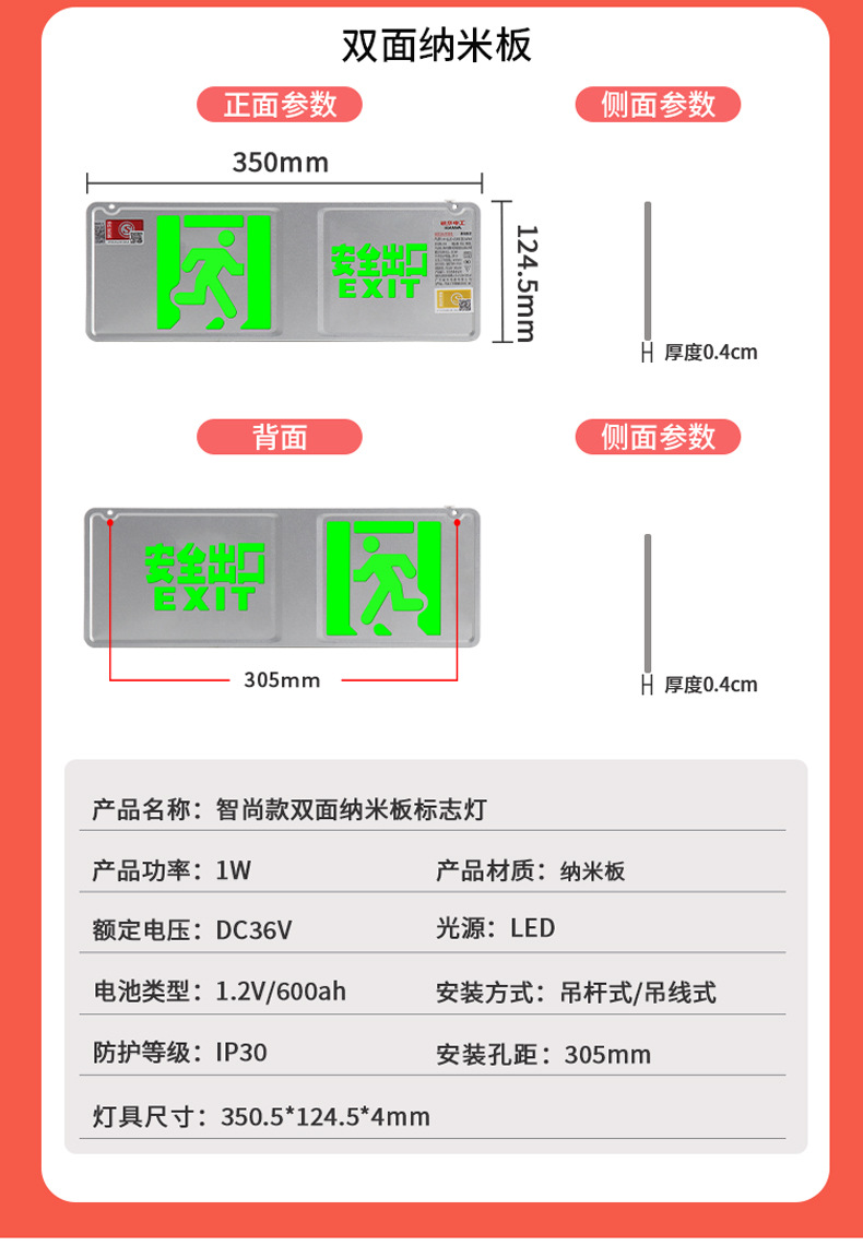 • Zhishang Nano 플레이트 마커 라이트 [양면 안전 출구] M6455-A