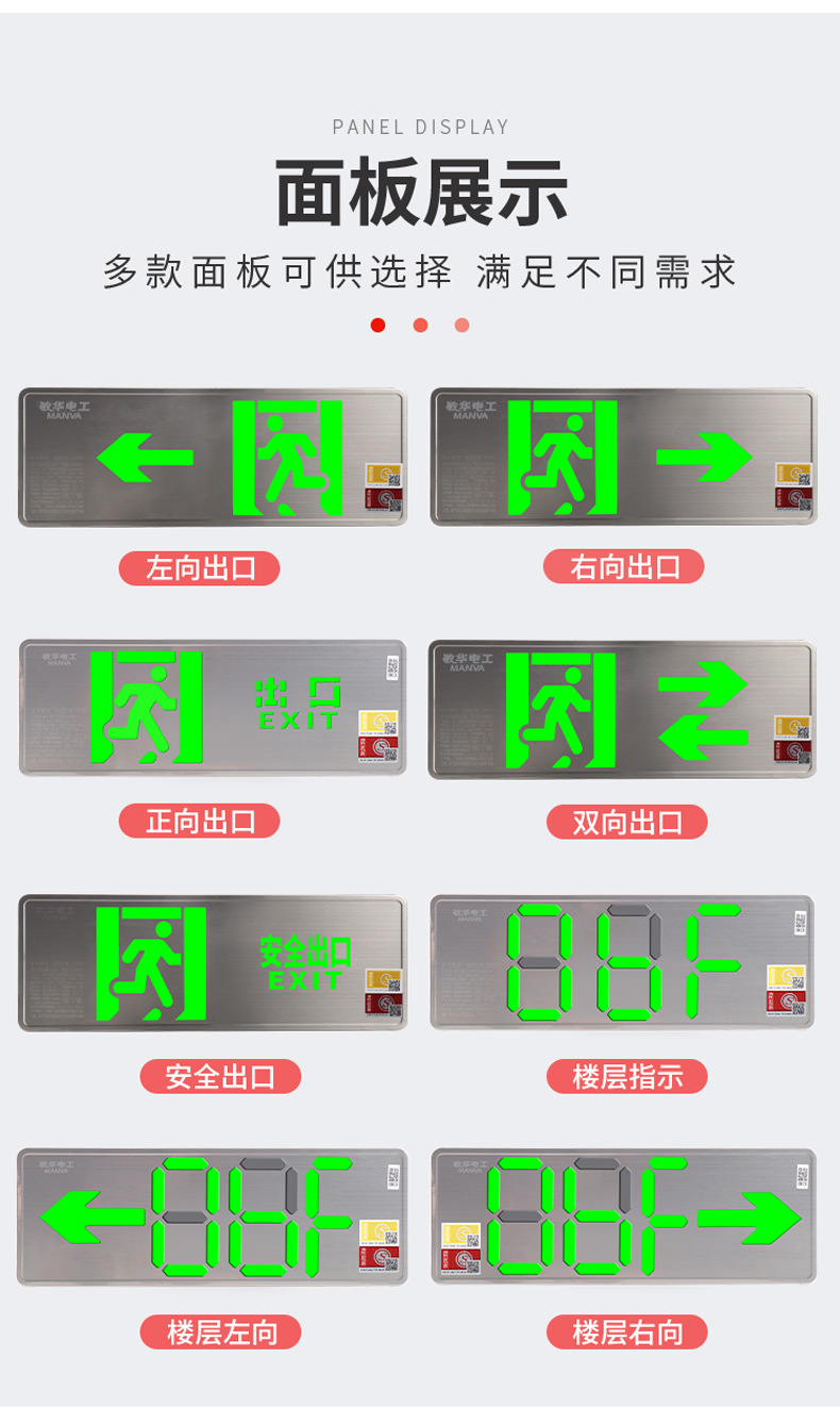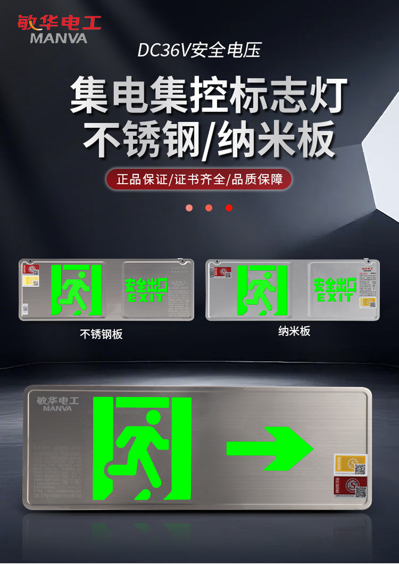 Minhua Zhishang 로고 조명 중앙 집중식 전원 공급 장치 스테인레스 스틸 나노 플레이트 화재 비상 조명 안전 출구 표시 등