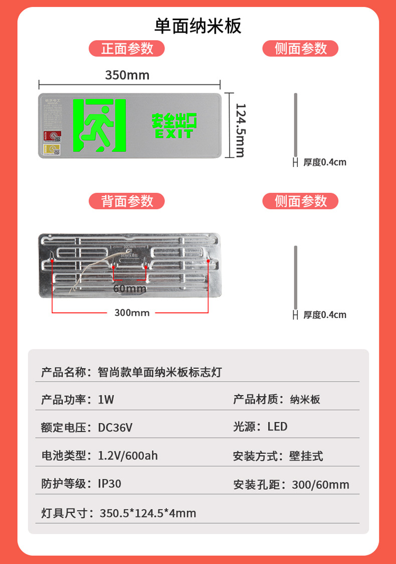 • Zhishang 나노 플레이트 마커 라이트 [단면 안전 출구] M6459-A