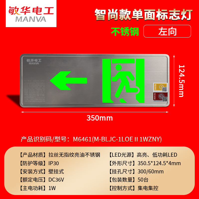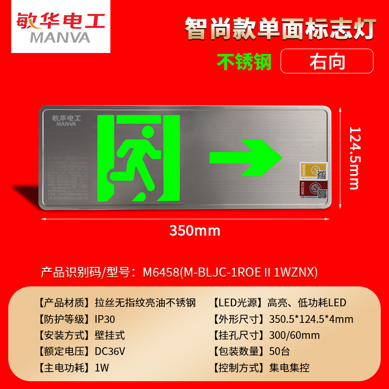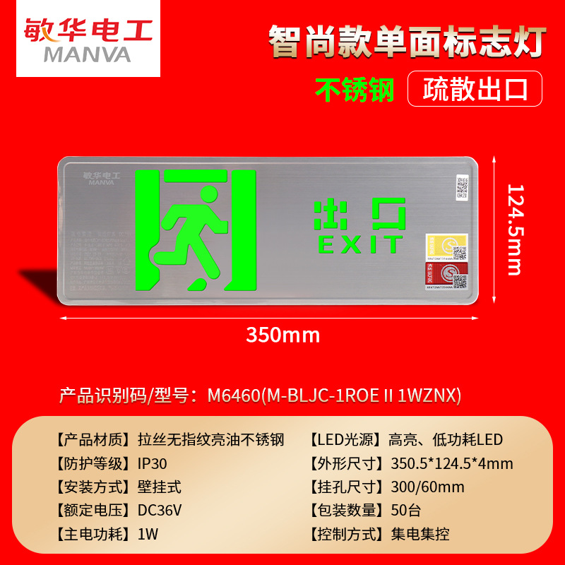 • Zhishang 스테인레스 스틸 사인 라이트 [단면 대피구] M6460