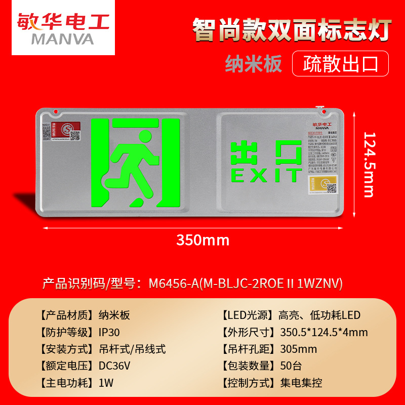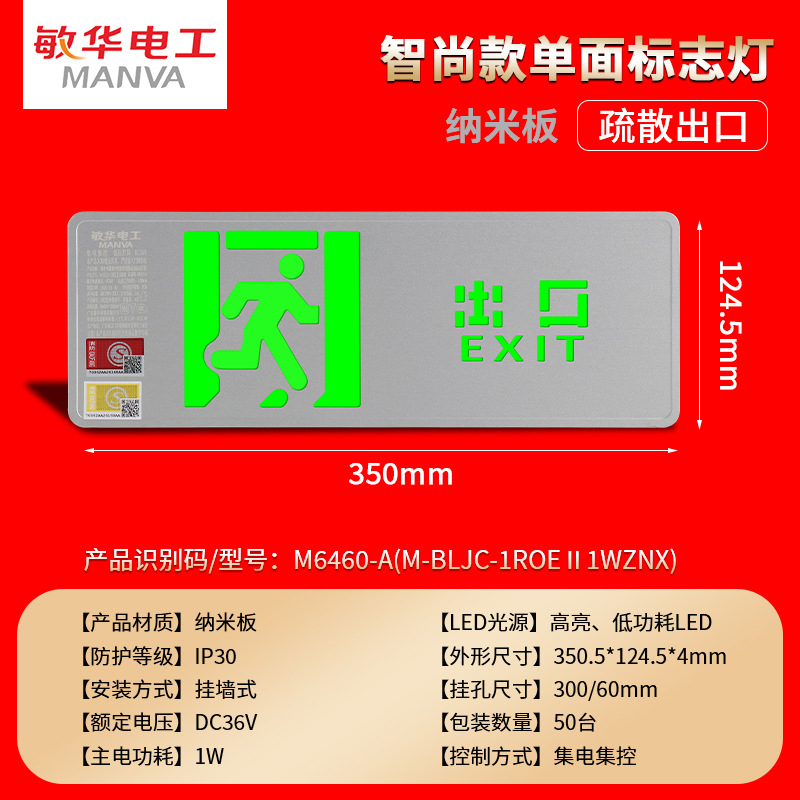Minhua Zhishang 로고 조명 중앙 집중식 전원 공급 장치 스테인레스 스틸 나노 플레이트 화재 비상 조명 안전 출구 표시 등스토어 가기