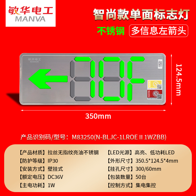 • Zhishang 스테인레스 스틸 사인 라이트 [단면 바닥 왼쪽 화살표] M83250