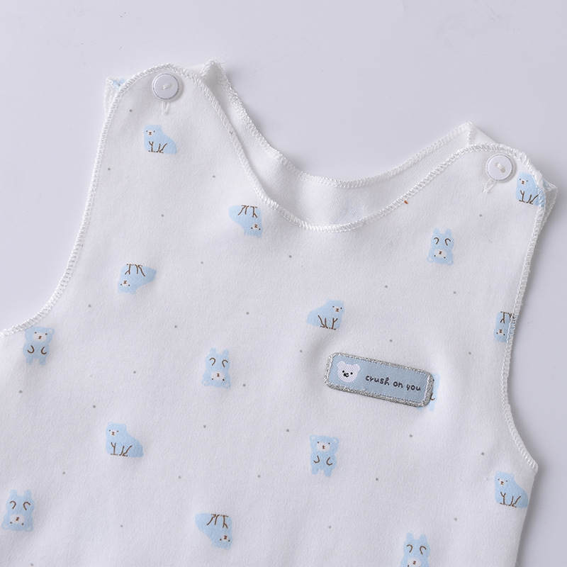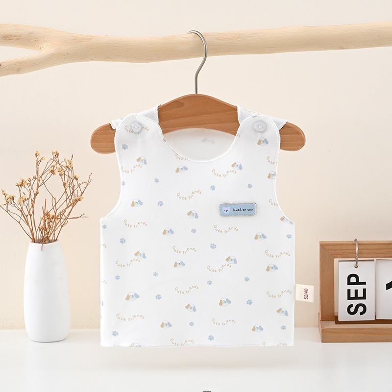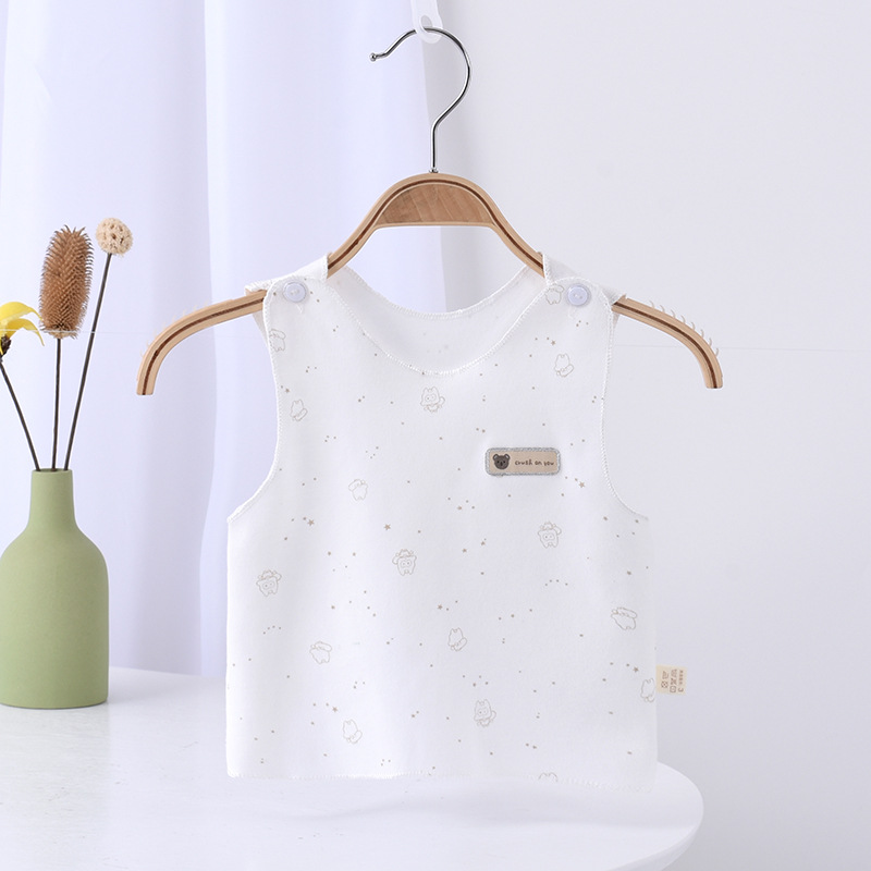 아기 어깨 버클 작은 민소매 뼈없는 조끼 신생아 백 파임 베이비 하프 백 조끼 0-3-6 개월