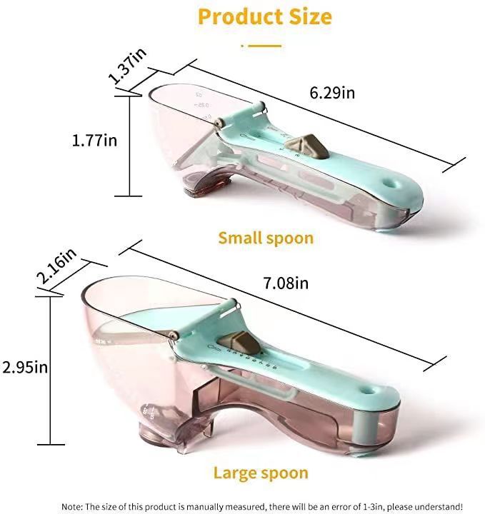 계량 스푼 2피스 세트 조절 가능한 계량 스푼 주방 도구 플라스틱 스케일 계량 스푼 조절 가능한 계량 스푼 세트