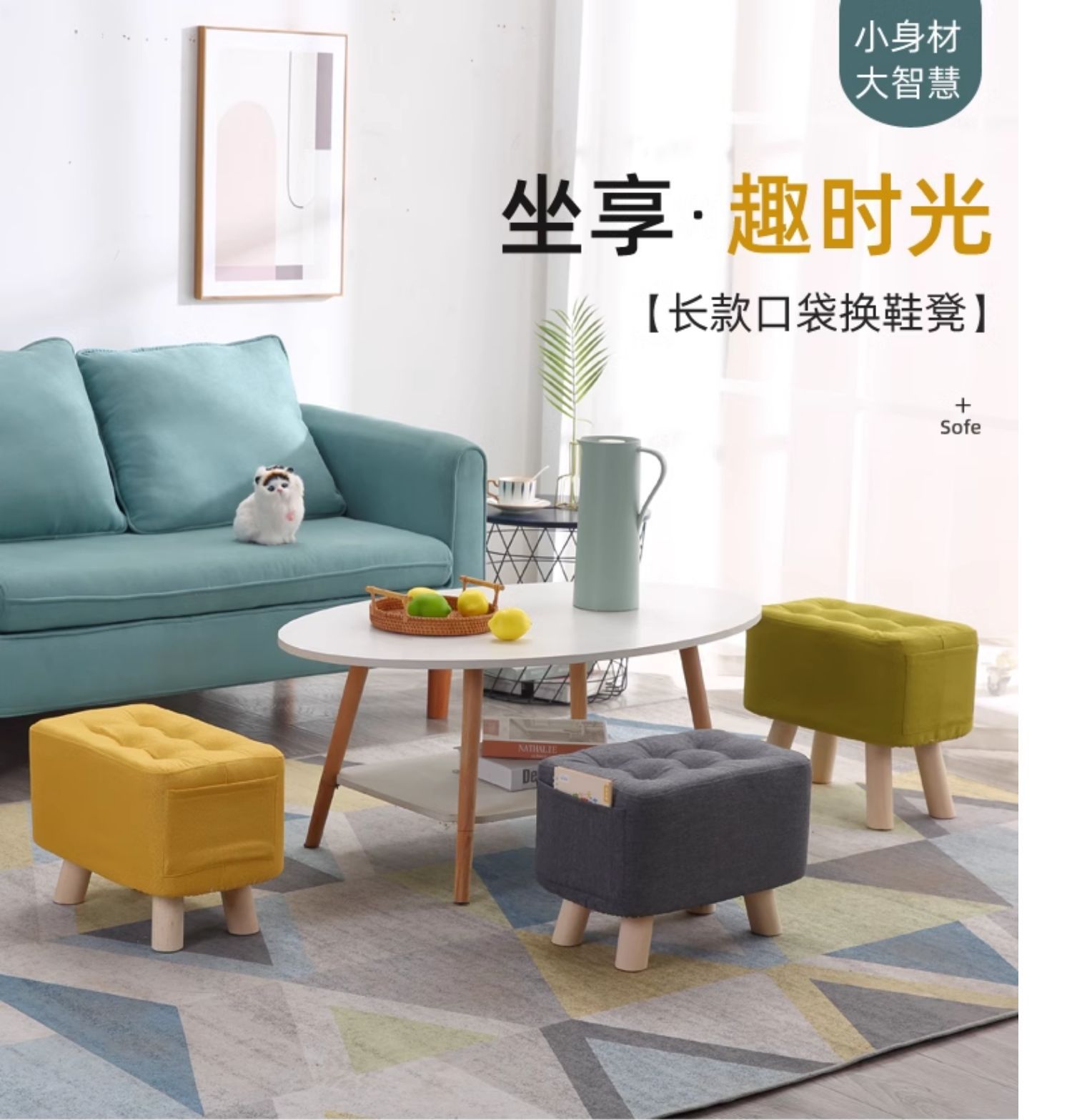패브릭 작은 의자 가정용 도어 신발 의자 솔리드 우드 벤치 거실 소파 의자 발판 소프트 백 페달 로우 스톨스토어 가기